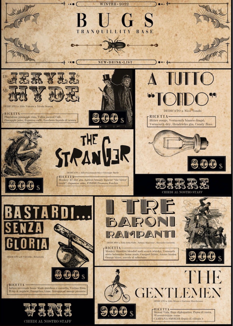 Due di questi ardimentosi giovani sono Danilo e Cristian che da poco hanno aperto il Bugs-Tranquillity base a Corato (provincia di Bari, nella nostra amata Puglia) un locale che, come loro stessi ci dicono “…è un locale anticonvenzionale che si ispira agli anni ’30, epoca del proibizionismo americano.