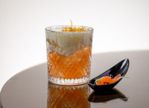 Vulcanos è per veri intenditori, soprattutto di Whisky. Infatti quello scelto da Alessandro Antonelli ha, tra le altre, la capacità di sviluppare al palato sensazioni affumicate e intense di malto d’orzo. Questo lo rende, da prima, protagonista indiscusso, e poi onesto partner del liquore di limone. L’abbinamento, non a caso, è con del salmone affumicato. Un drink di sicuro impegno gustativo, che stimola però la competenza degli appassionati del genere.