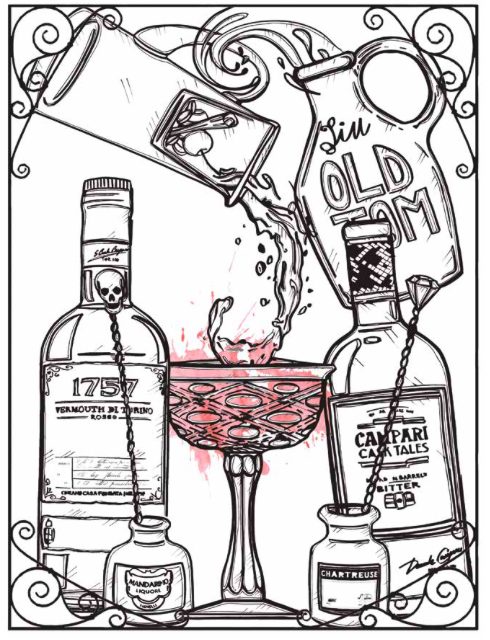 Se c’è un termine che potremmo usare per descrivere questo libro è proprio ‘distillato’ – dentro ci (ri)trovi tutto il mondo del Gin, dalla ricerca alla botanica, dalla storia a qualche piccolo segreto o curiosità (che poi magari segreto non è), dagli aneddoti ai brand, fino a quella sana voglia di raccontare, splendidamente illustrati dalla bravissima Serena Conti (qui vedete alcune sue pagine del libro)