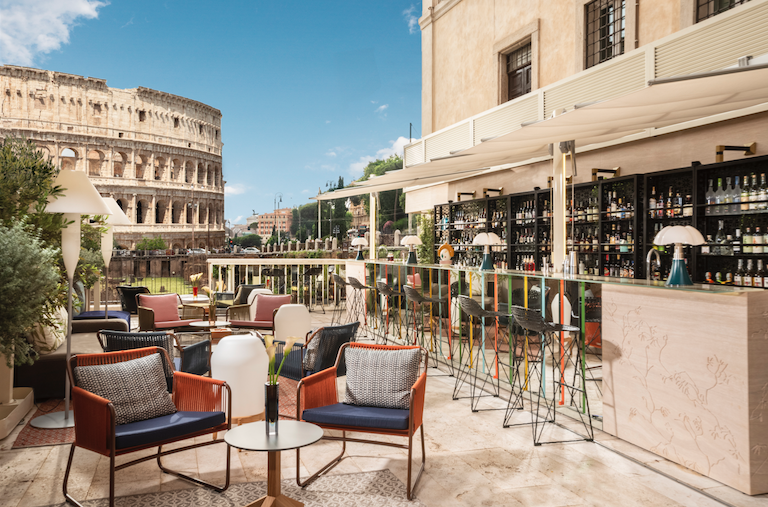 Negli stessi spazi di quella Roma imperiale oggi sorge Palazzo Manfredi, boutique hotel che affaccia sul Colosseo, un vero gioellino. Qui si innesta The Court, un concept pionieristico per vivere l’Urbe secondo le nuove prospettive del bere contemporaneo. A progettare gli spazi lo studio di architettura Loto Ad Project che ha scelto di collaborare solo con aziende made in Italy.