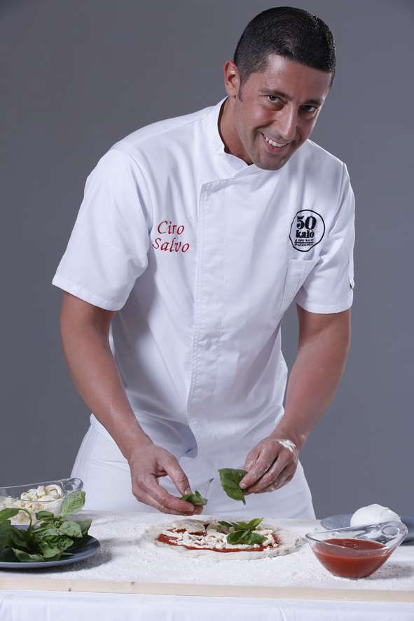Ciro Salvo è la terza generazione di una famiglia di pizzaioli. Nato a Napoli nel 1977, si è formato nella pizzeria della nonna a Portici, prima come fornaio e poi all’impasto. Nel 1996 si diploma e sceglie come professione il pizzaiolo mettendoci passione, dedizione e studio. La sua ricerca sull’impasto lo distingue dagli altri: lavora la farina con percentuali di acqua che superano la ricetta tradizionale e mette a punto un impasto altamente idratato, leggero e digeribile, unico nel panorama pizza in Italia.