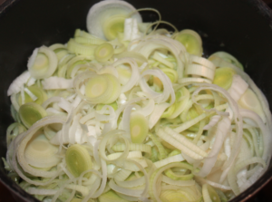 Pulite i porri togliendo la parte verde e tagliateli a rondelle.
