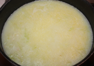 Quando le patate e i porri saranno cotti, immergete il frullatore fino ad ottenere una crema. Aggiustate di sale e aggiungete il pepe nero (facoltativo).