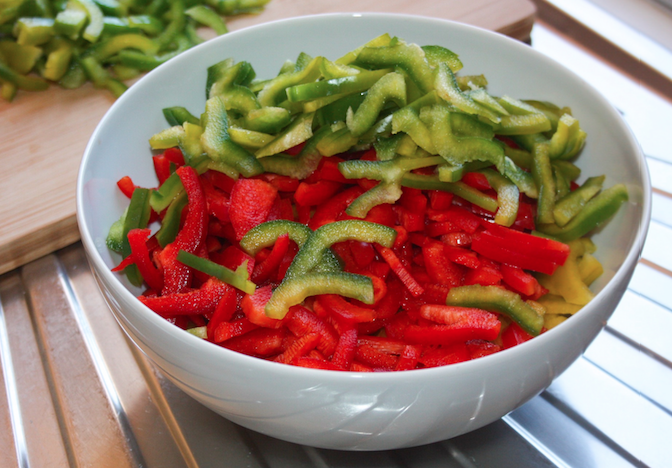 Lavate i peperoni e tagliateli a listarelle sottili.