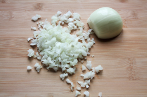 Ripulite i funghi porcini dai residui di terra, lavateli e tagliateli a fettine da 0,5 cm. Tritate finemente una cipolla media e fatela imbiondire con un po’ d’olio.