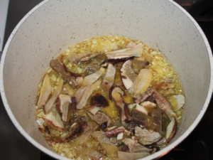 Quindi aggiungete i funghi e rosolateli per qualche minuto.