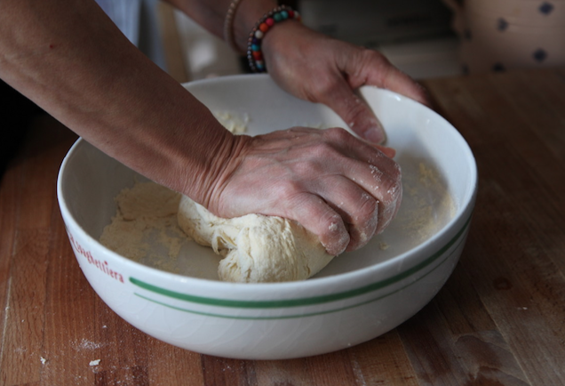 Poi ho fatto la pasta con le due farine, un pizzico di sale e acqua quanto basta. Ho lasciato riposare il panetto cinque minuti e poi l’ho lavorato per dieci minuti.