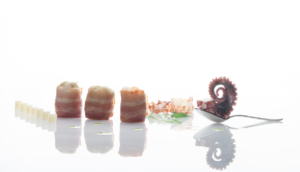 La zuppetta di mare speziata, con seppie, cozze, vongole e mazzancolle, preparata con cipolle, pepe e zenzero. Il tortino di polipo verace con patata aspromontana (ha un profumo e un sapore molto persistenti ed è chiamata la “bellina”) e caciocavallo di Ciminà, presidio Slowfood. Il cannolo scomposto di ricotta aspromontana, servito sul piatto e da ricomporre per ricostituirne i gusti