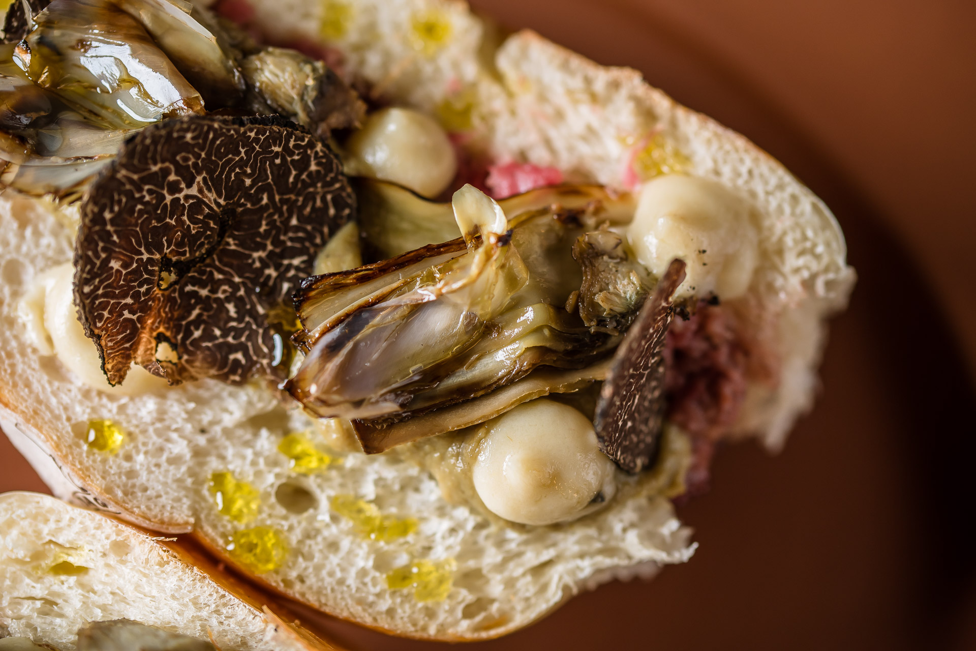 “Autunno dai mille sapori, autunno dai tanti profumi, quando arriva questa stagione noi di Da Gigione Gourmand respiriamo aria di novità, di ingredienti, cotture e tecniche da riprendere in mando dopo tempo oppure da sperimentare e conoscere da zero. Durante la preparazione del nuovo menu per me è molto importante mantenere sempre alte la stagionalità dei prodotti e la loro territorialità, prediligendo materie prime campane. Durante questo periodo dell’anno uno dei nostri pezzi forte è sicuramente Panino On Top Carciofo e Tartufo: pane ai semi di sesamo, hamburger 100% razza bovina Marchigiana IGP da 220 gr, arricchito con pecorino, aglio, limone, peperoncino ed erbe. Per quanto riguarda invece la farcitura on top, troviamo una sfoglia di carciofo cotta alla brace con forno Josper, carciofo fermentato, spumoso di Lardo di Colonnata e per concludere una grattugiata di tartufo nero. Un insieme di profumi e sapori autunnali da assaporare rigorosamente in un sol boccone per comprenderne a fondo la bontà e la ricercatezza negli abbinamenti. Quando si tratta di “panino” mi piace sempre osare con gli abbinamenti: solitamente suggerisco un vino più classico come può essere il Châteauneuf du Pape Rouge 2015 – Clos saint Jean, che colpisce per la potenza e il corpo, pur mantenendo la sua vena elegante senza sovrastare mai la pietanza. Oppure, per chi preferisce invece spingersi un po’ oltre, consiglio un Sauvignon – Collio – Toros – 2006, un abbinamento che personalmente trovo sorprendente, l’evoluzione di un bianco che rimane giovane all’impatto visivo e che sprigiona poi al palato la sua età con sentori morbidi, intensi, anche di idrocarburi”.