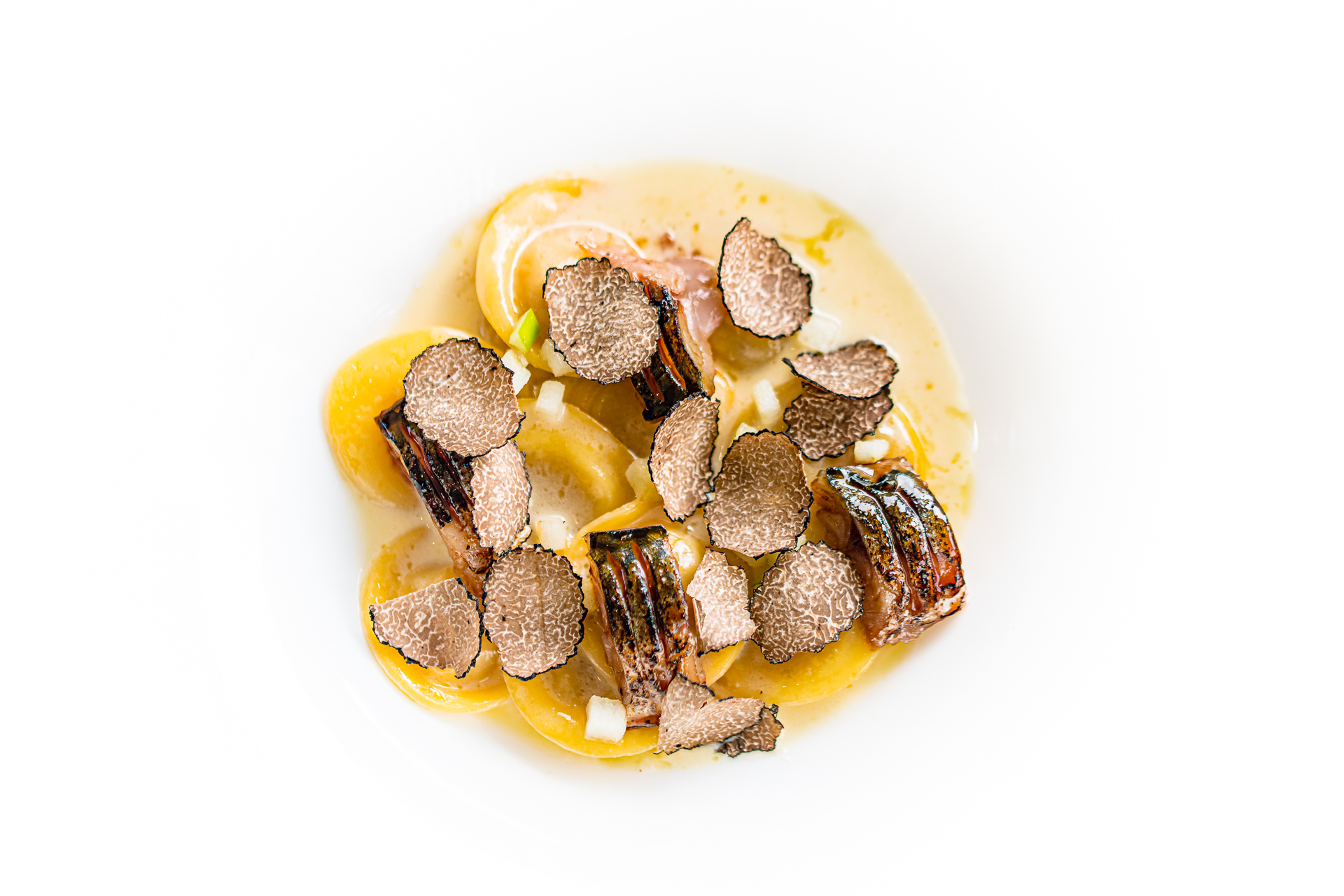 Fa parte del nuovissimo menù “Get Green”, il piatto scelto da Emanuele Scarello che rappresenta l’autunno Agli Amici: Tortelli di rapa con miso d’orzo e tartufo nero.