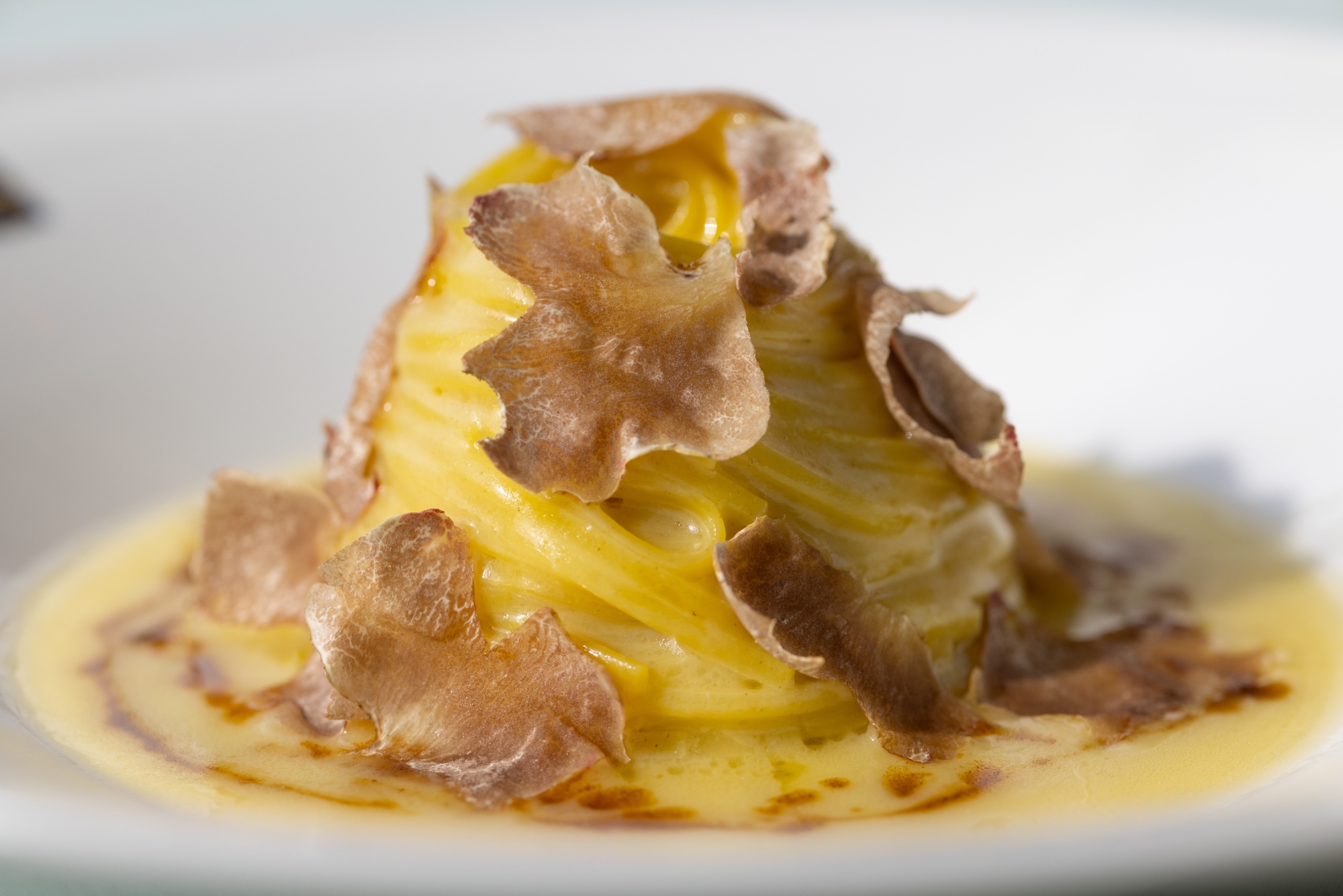 Siamo a Positano, ma per questa volta facciamo una capatina nelle Langhe, con un piatto che esalta al meglio uno degli ingredienti più pregiati e importanti della stagione, il tartufo bianco. Lo chef del ristorante La Sponda, Gennaro Russo, ha scelto una ricetta golosa e ricca, il Tagliolino all’uovo con tartufo bianco: nidi cremosi di pasta all’uovo sottile, glassati con burro e spolverati di parmigiano e lamine di tartufo bianco d’Alba. Per accompagnare questo piatto, il sommelier Cristian Fusco suggerisce di allontanarsi dall’abbinamento classico di un Barolo o di un Barbaresco con il tartufo: “la prima proposta