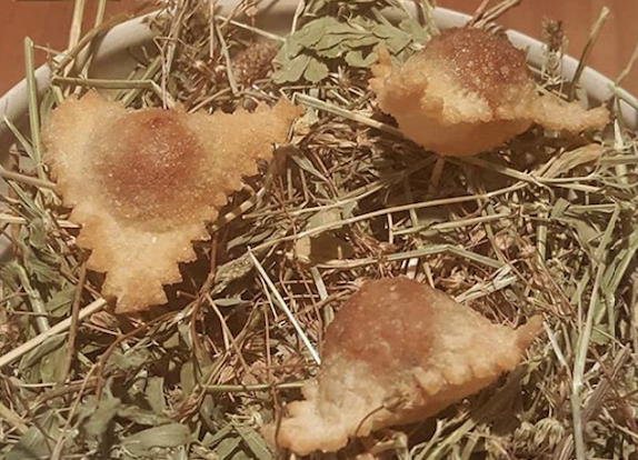Impastare farina, vino e sale. Stendere finemente l’impasto. Adagiare il ripieno di coniglio sulla sfoglia, coprire con ulteriore sfoglia e dare una forma di triangolo. Cuocere le rissole nell’olio portato a 170°, quando saranno ben dorate, scolarle bene e salare.