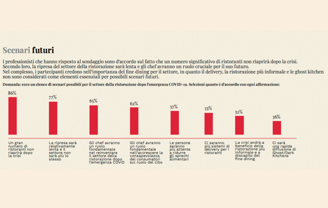 Ricostruire e riprogettare sono elementi prioritari per risollevare l’industria della ristorazione tanto che il 65% (59%in Italia) degli intervistati ritiene che i professionisti avranno un ruolo essenziale nella ripresa del settore e che la loro esperienza e professionalità saranno fondamentali nelle prime fasi di costruzione di un nuovo panorama gastronomico.