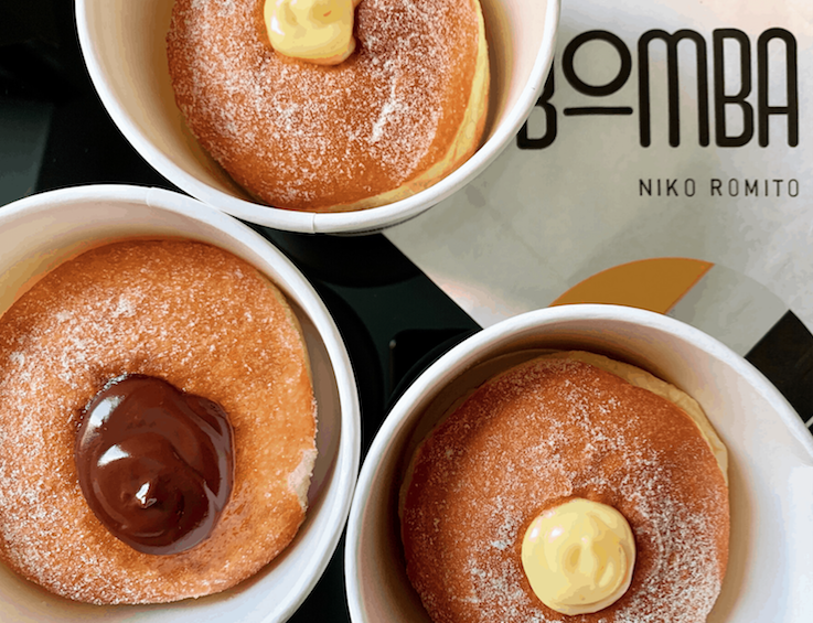 Niko Romito ha voluto portare nel cuore del suo Abruzzo un messaggio di gioia in un momento in cui la regione sta lottando per superare la pandemia. La gioia è la BOMBA, buona, calda e golosa. Un dolce che appartiene all’infanzia di tutti gli abruzzesi e che nel temporary di Pescara sarà presente nella versione dolce, quella della tradizione: vuota, alla crema, al cioccolato e alla confettura di albicocche da abbinare alla cioccolata calda, così come faceva lui da bambino a Rivisondoli.