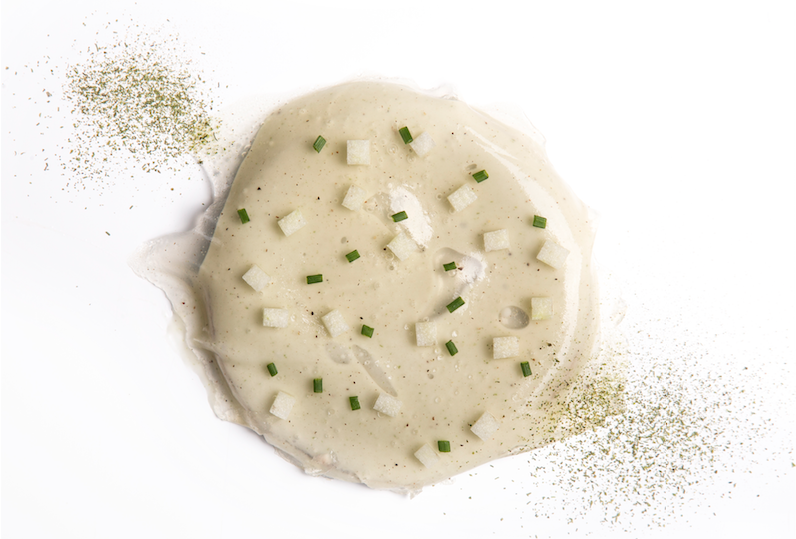 Da sempre lo chef abbraccia una filosofia del sostenibile, legata al recupero di ogni singola parte della materia prima, ragion di più se si tratta proprio del maiale, ai cui tagli ‘meno nobili’ aveva già dedicato un piatto, la Gelatina di maiale, ostrica, dragoncello e mela verde: “la gelatina di maiale è una preparazione tipica di quando si macella e si cucina l’animale; praticamente viene recuperato tutto il fondo del pentolone dove vengono bollite a lungo le parti povere del maiale (pelli, naso, orecchie, coda, gambe e ossa varie), con il collagene naturale di queste, facendolo raffreddare, si crea una gelatina naturale. Tradizionalmente era una forma di conserva che si consumava sul pane, e che veniva conservata in dei vasi di vetro.” – racconta Abbruzzino – “Noi abbiamo creato questo antipasto freddo abbinando allagelatina di maiale, quindi una parte grassa, la parte iodata dell’ostrica, con la parte acida ederbacea della mela verde.”
