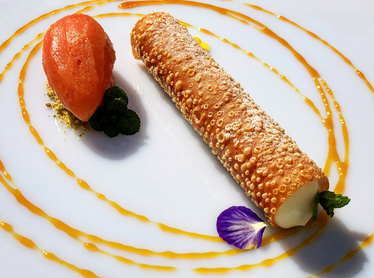 Il Pre-Dessert non ve lo svelo perché sarà una sorpresa, mentre concludo con il signature dessert: Il Pensiero di Ettore, un cannolo siciliano rivisitato, in vera versione 100% vegan.