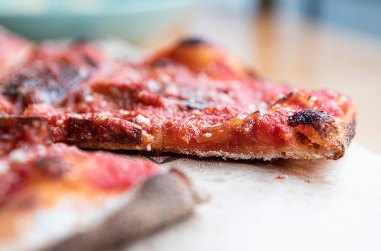 Tutte le pizze sono condite con gli ingredienti e le ricette della cucina di Straforno. E quindi, per esempio, la pizza con la parmigiana sarà fatta con il sugo della vera parmigiana di melanzane, una preparazione di famiglia che ricalca il sapore della classica pietanza. Lo stesso vale per il sugo dell’amatriciana o per il semplice topping della salsiccia, prima cotta sulla piastra e fatta sfumare nel prosecco e in ultimo ‘sbriciolata’ sulla pizza.