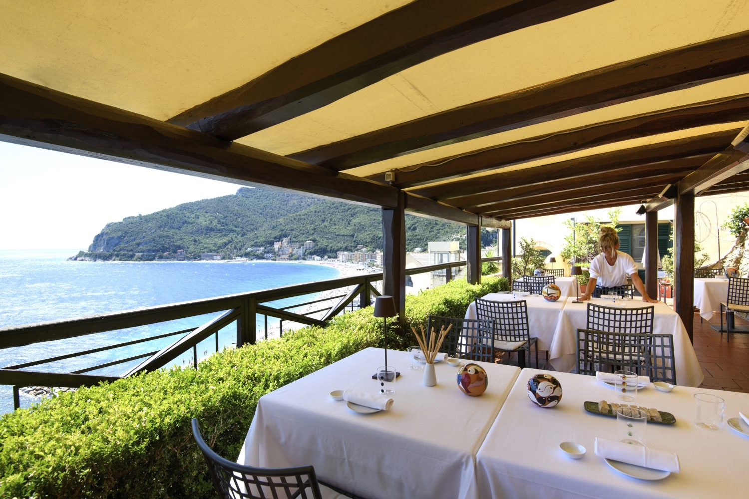 Nella suggestiva atmosfera medievale dell’antico borgo marinaro di Noli, all’interno di un palazzo quattrocentesco, un tempo dimora di Vescovi, prende vita il Ristorante Vescovado, il regno dello chef stellato Giuseppe Ricchebuono. Le salette affrescate che ben conservano il fascino d’altri tempi, d’estate lasciano il posto alla terrazza panoramica che domina su uno dei tratti di costa più suggestivi della riviera ligure di ponente. Ed è qui che vanno in scena le nuove specialità di ‘Giuse’, come viene amichevolmente chiamato lo chef, un alternarsi di sapori e ingredienti che rappresentano il territorio e le eccellenze della tavola ligure. Tra le proposte di menu da non perdere è ‘Passeggiata al mare’, una degustazione che ha come portate principali lo Spaghetto Benedetto Cavalieri, aglio, olio, peperoncino, mantecato ai ricci di mare, crudo di gamberi e piselli, e il Bianco di dentice, asparagi viola d’Albenga, ortiche e maionese all’aglio selvatico (menu completo 110 euro, bevande escluse – il ristorante fa parte di les Collectionneurs).