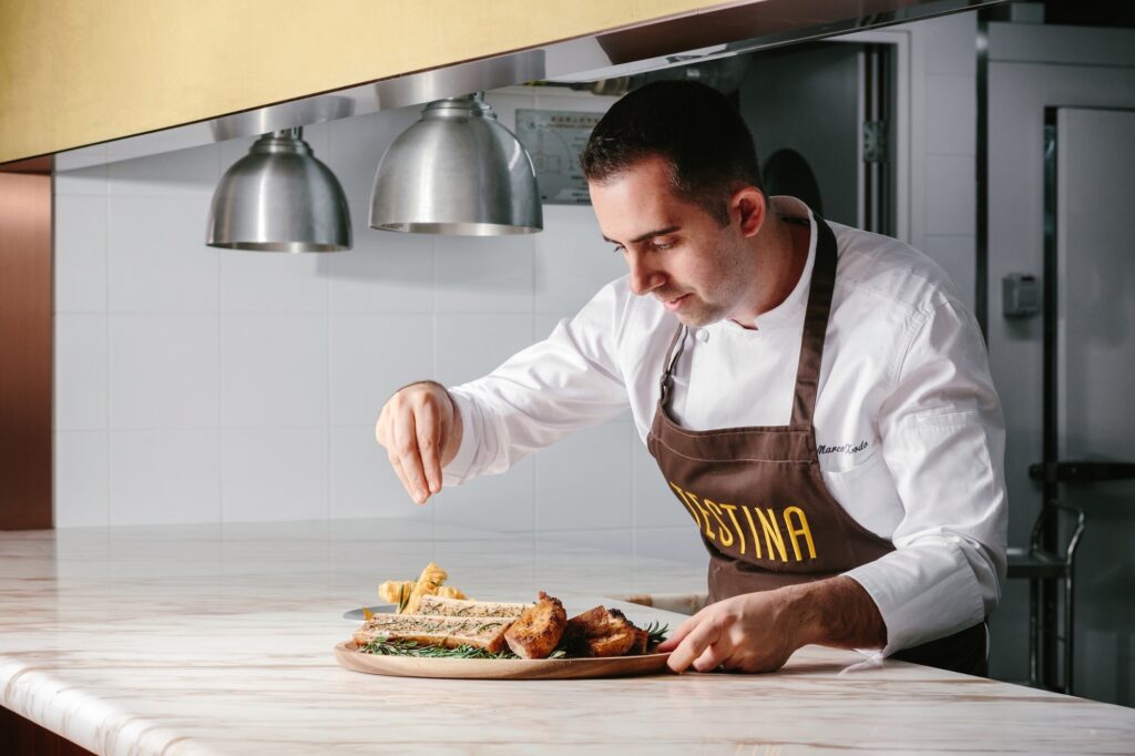 Lo chef di Testina è Marco Xodo, ex resident chef di 81⁄2 Otto e Mezzo BOMBANA Shanghai, 2 stelle Michelin, che sceglie di utilizzare sia prodotti locali che importati dall’Italia.