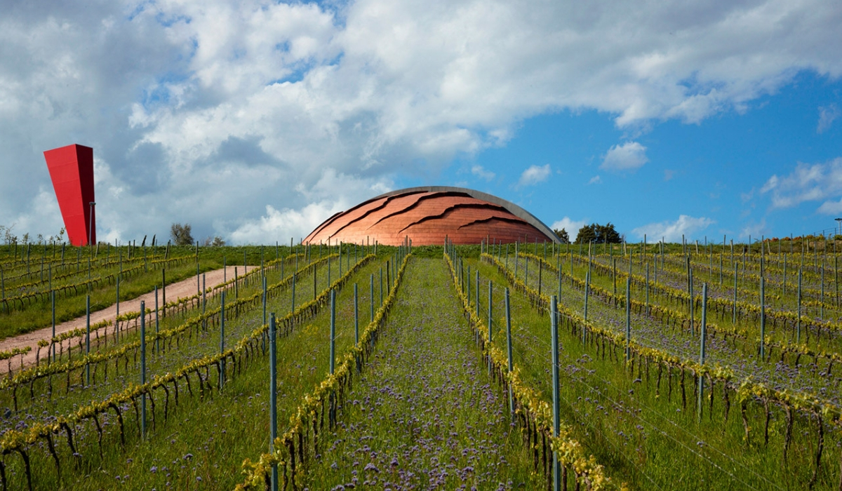Dall’amicizia tra Arnaldo Pomodoro e la Famiglia Lunelli nasce a Bevagna, in provincia di Perugia, un progetto che mette in discussione i confini tra scultura e architettura. La sfida si chiama Carapace: una scultura dove è possibile vivere e lavorare, una cantina capace di integrarsi perfettamente con la natura circostante. “Ho avuto l’idea di una forma che ricorda la tartaruga, simbolo di stabilità e longevità che, con il suo carapace rappresenta l’unione tra terra e cielo” racconta Arnaldo Pomodoro. Visite guidate e degustazioni solo su prenotazione. Info e dettagli sul sito della Tenuta Castelbuono