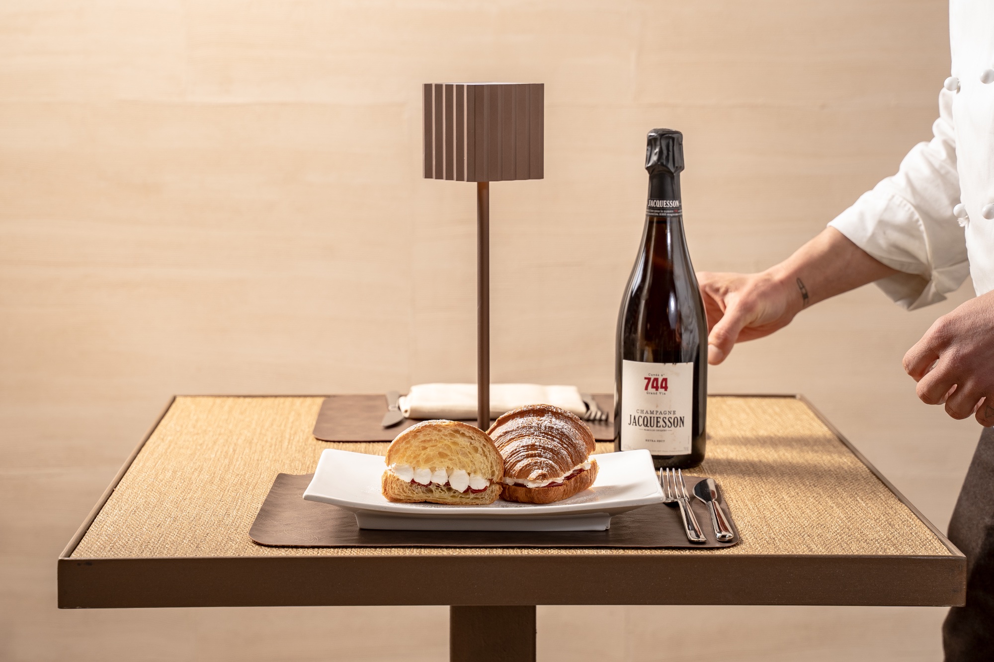 - Croissant con gelato / Champagne Cuvée 744 Extra Brut – Jacquesson